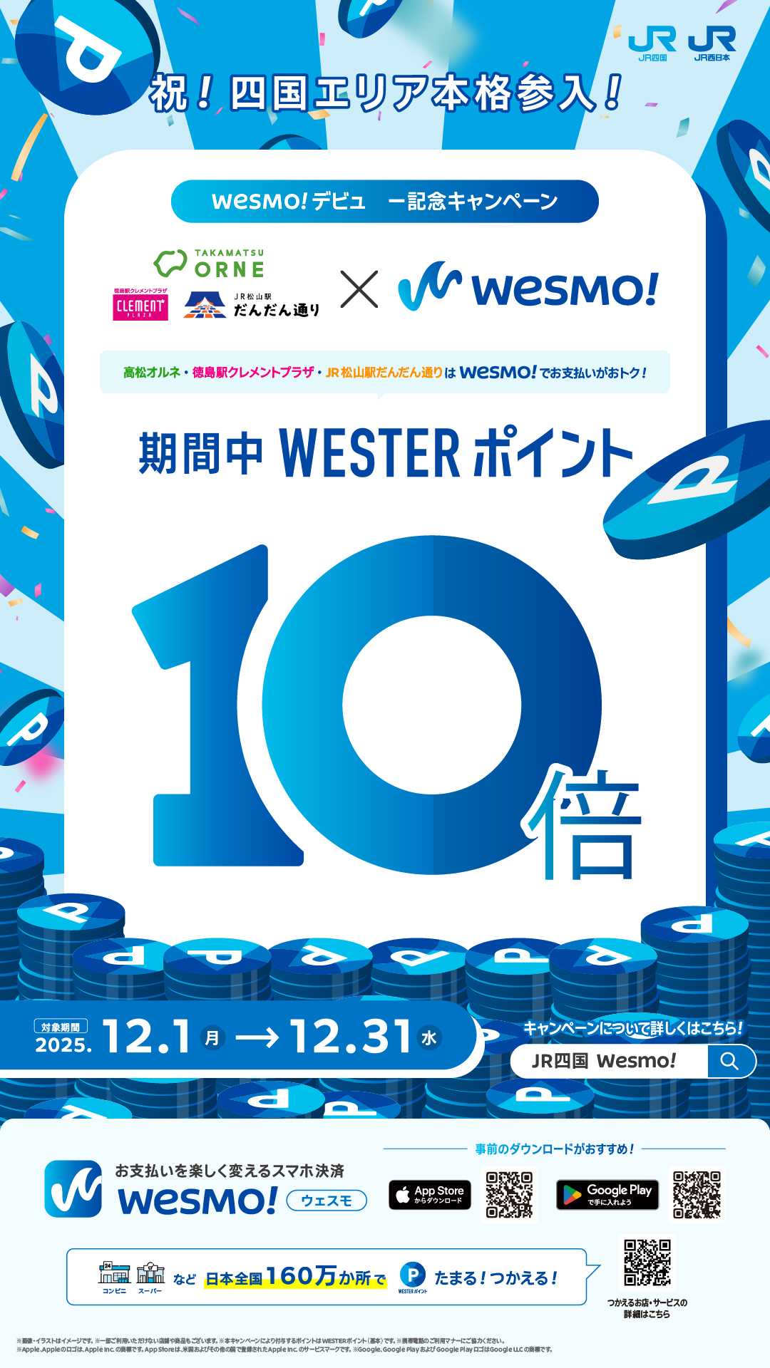 JR西日本のQR決済サービス 「Wesmo!」 がおトクなポイント還元キャンペーン を実施いたします!