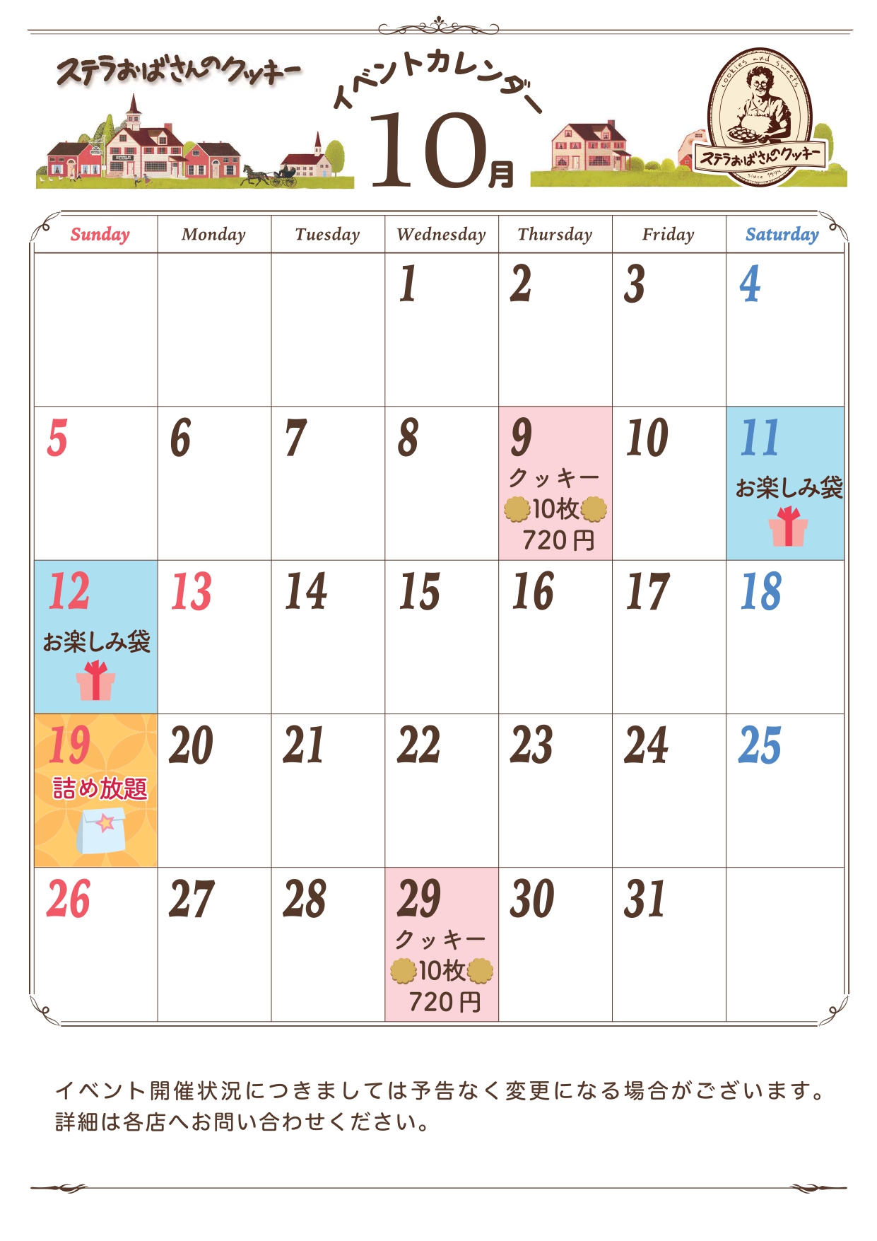 〈ステラおばさんのクッキーTAKAMATSU ORNE店 10月イベントカレンダー〉