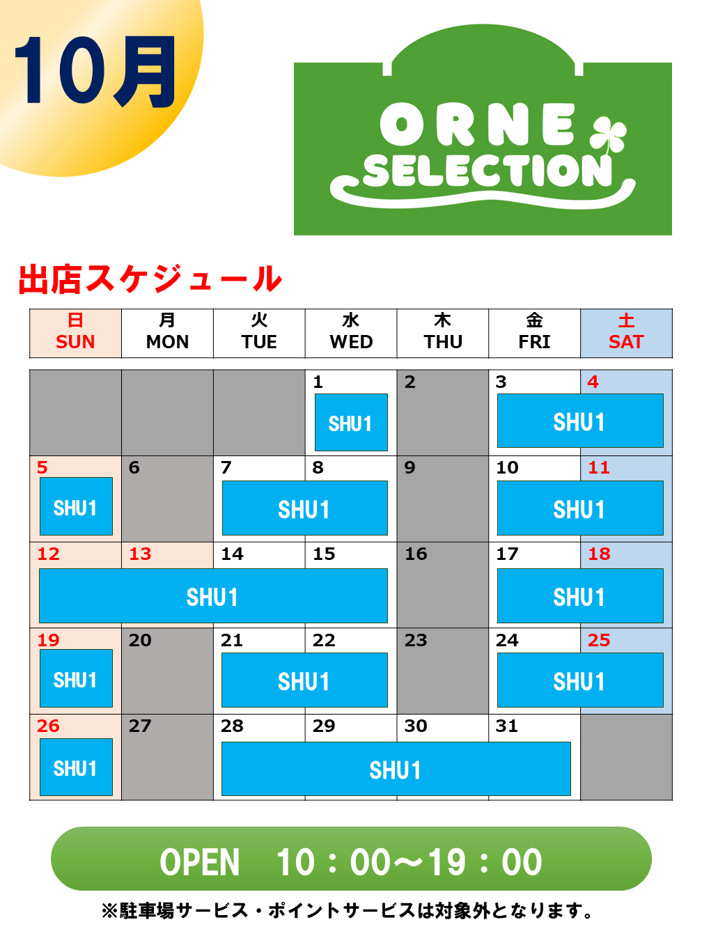 10月出店スケジュールについて(10/18更新)