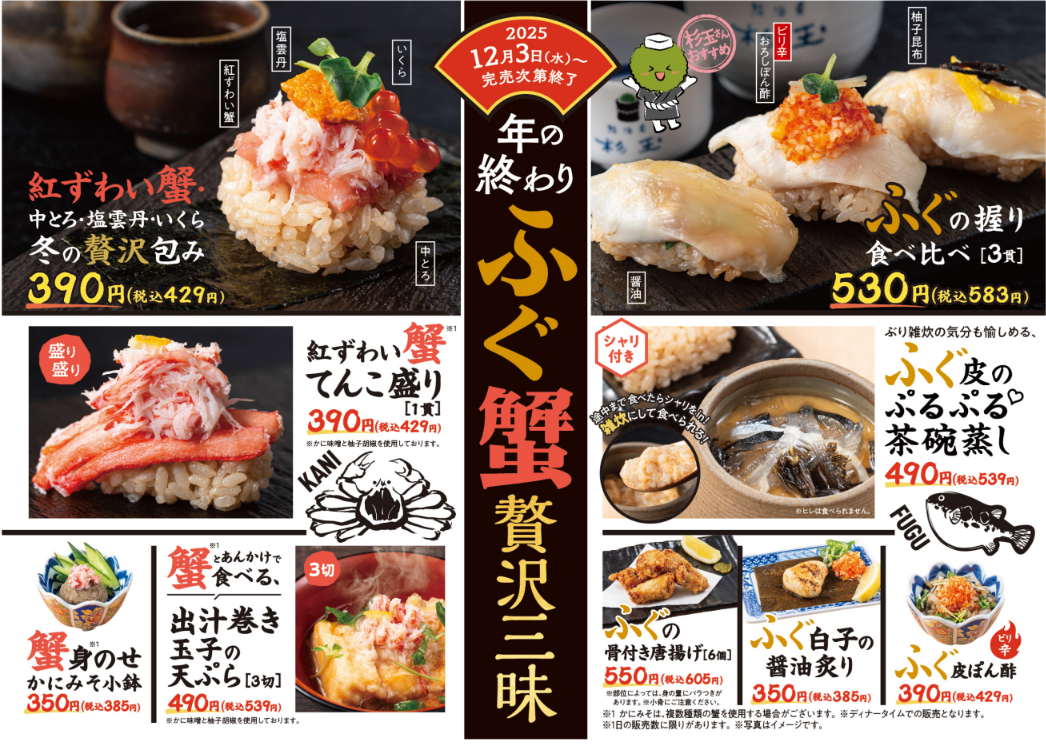 杉玉 期間限定メニュー登場!「ふぐ蟹贅沢三昧」