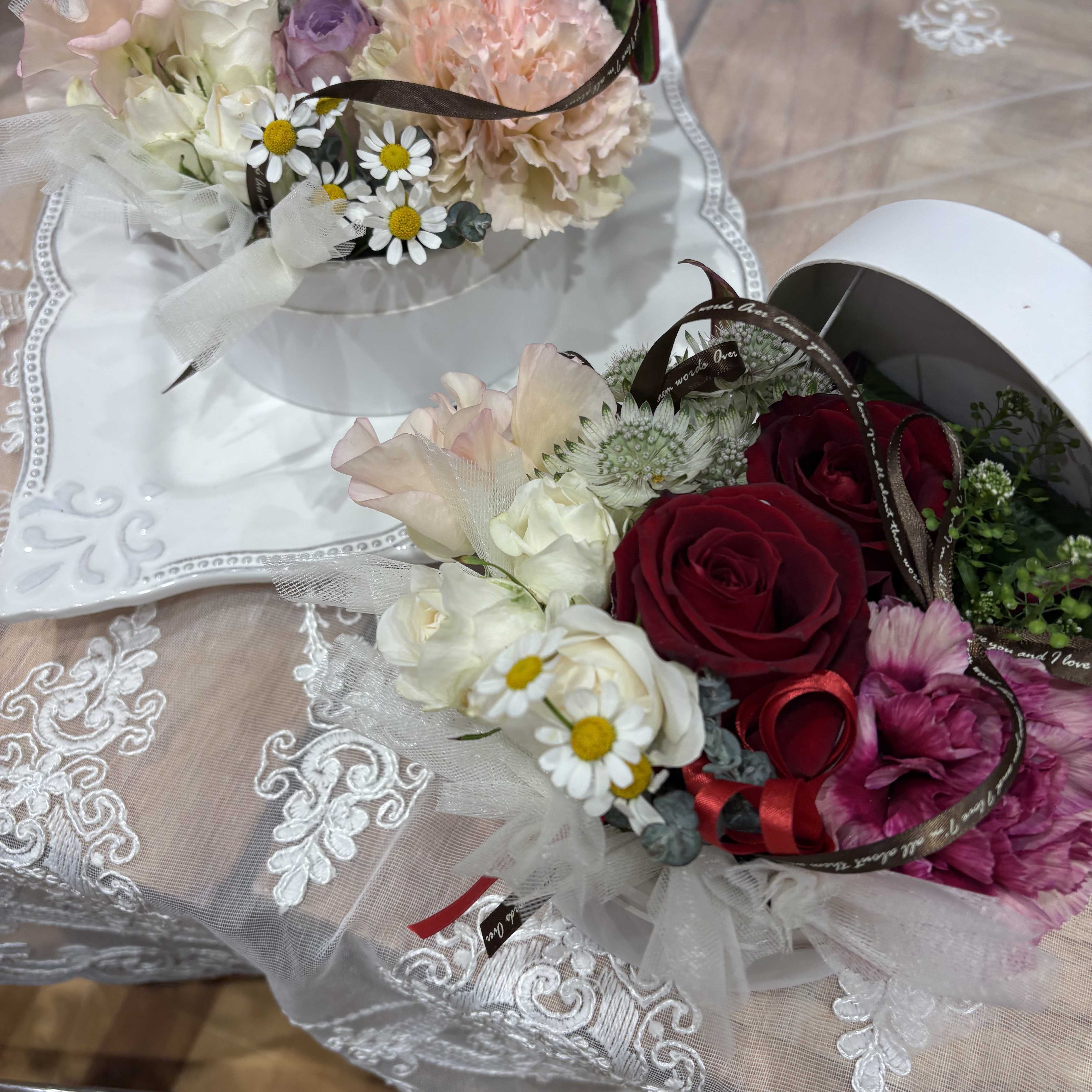 ハナハミネでは、ボックスアレンジメントや花束などの生花や、ロッシェという食べられるお花を使ったお菓子もご用意しております!