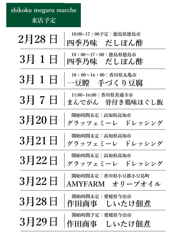 この機会に是非shikoku meguru marche にお越しくださいませ!