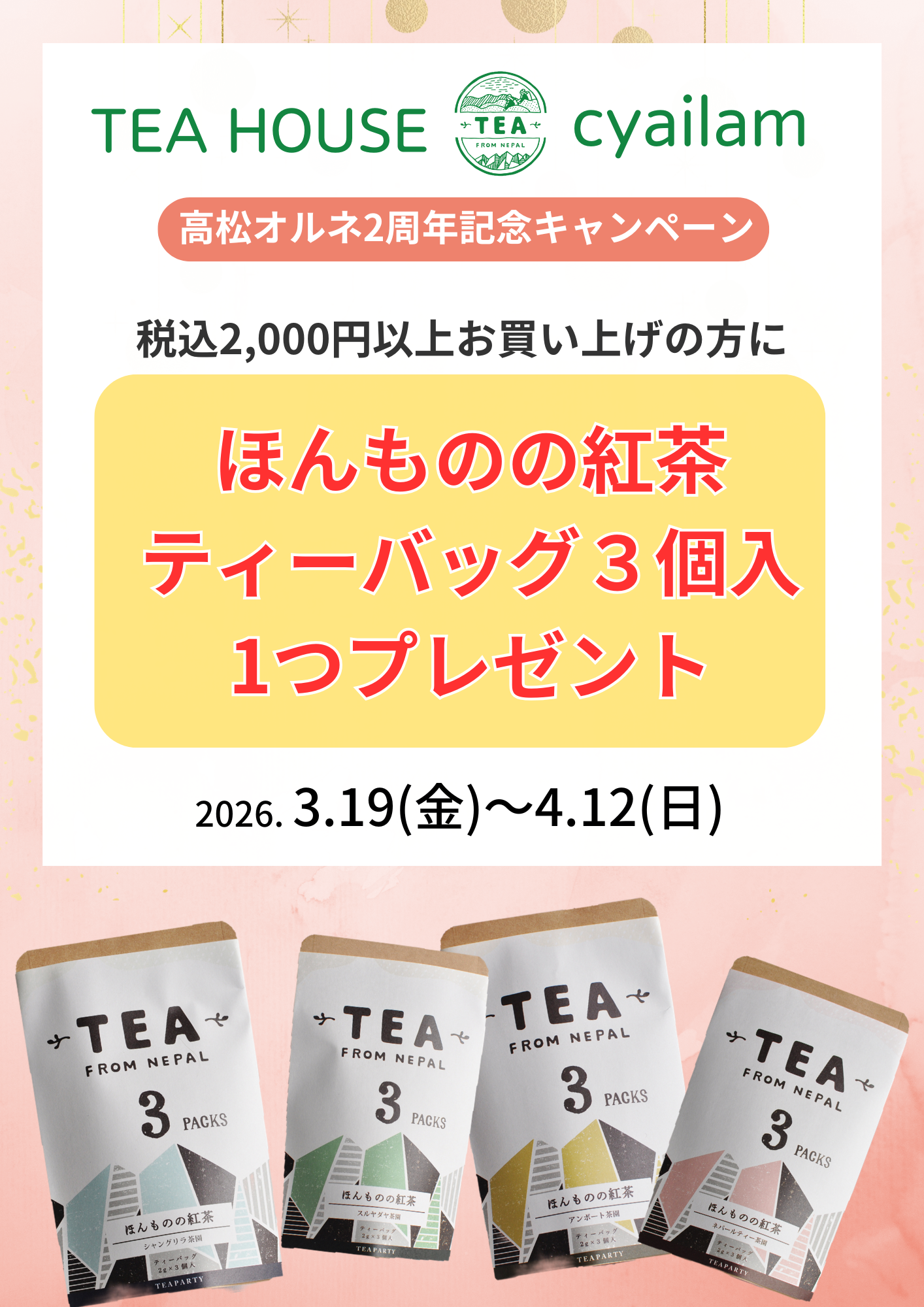 高松オルネOPEN2周年に合わせてTEAHOUSEcyailamから心ばかりの贈り物。