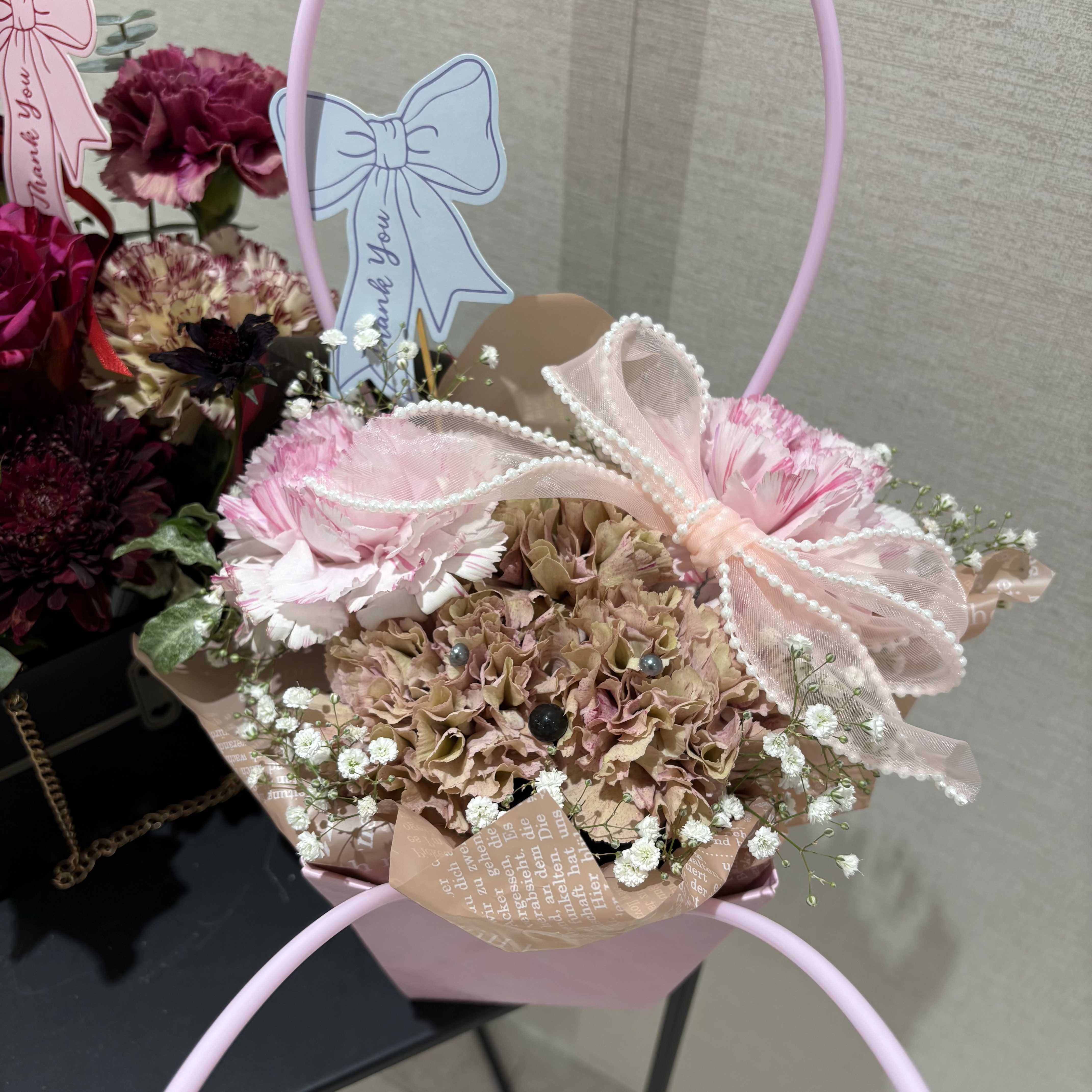 ↑カーネーションのプードルアレンジメントもご用意しております