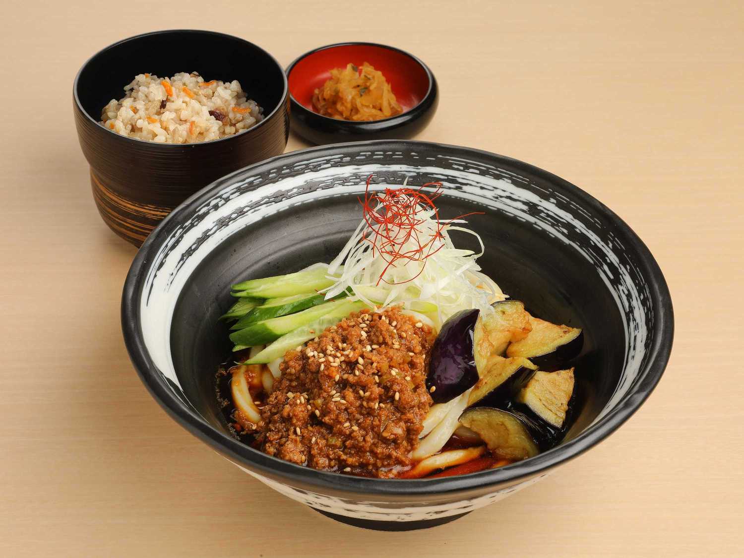 揚げ茄子と肉味噌のピリ辛冷やしうどん